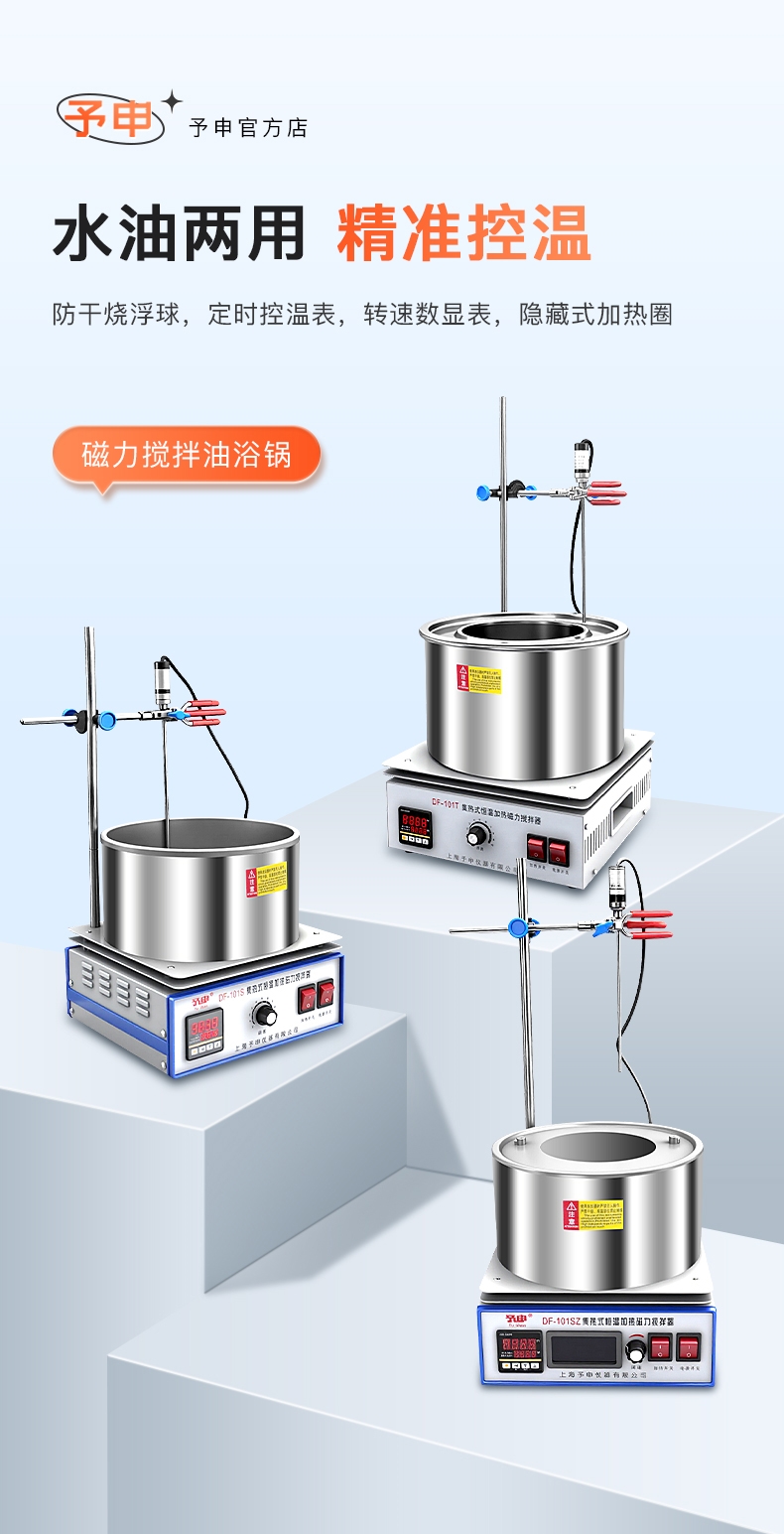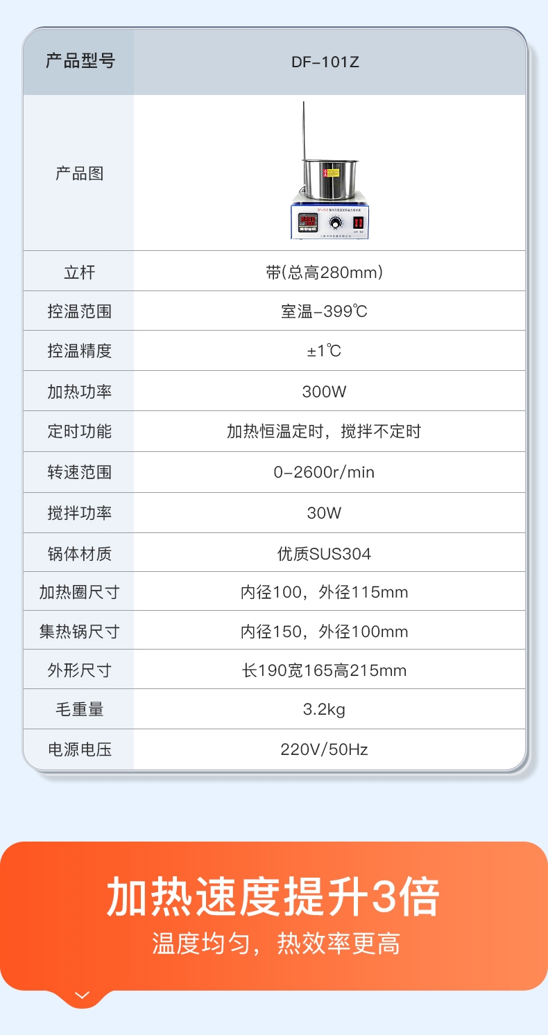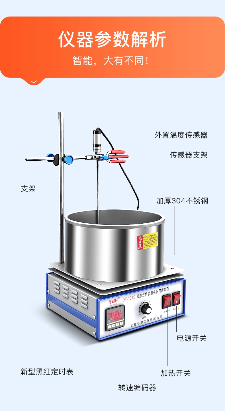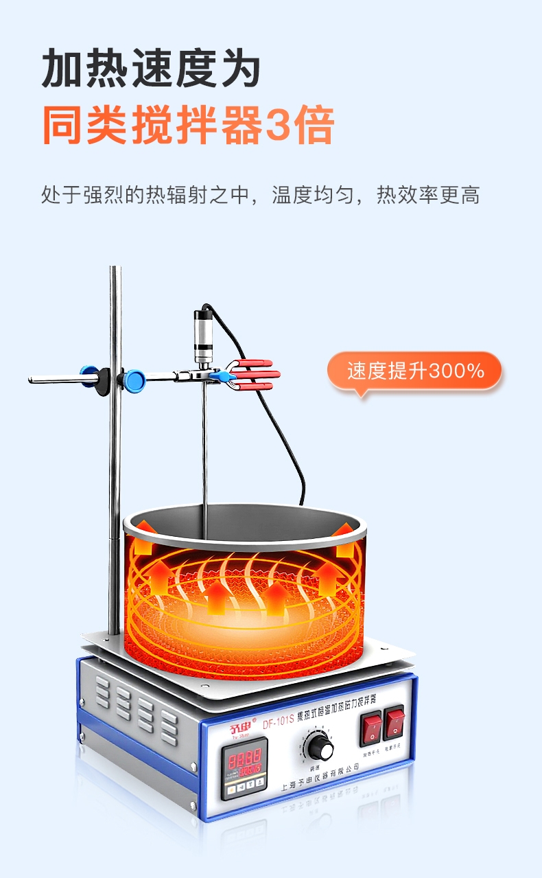 (1)DF-101S集热式恒温磁力搅拌器厂家生产的DF-101S集热式恒温磁力搅拌器采用集热式加热法,搅拌溶液置于集热锅内,加热速度快,溶液温度均匀、稳定、大大提高了搅拌效率。